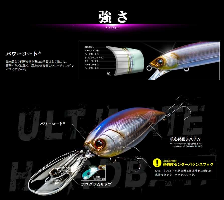 而在诱鱼能力上,latour系列引入了一项革命性的创新技术——全息舌板设计。该技术将超薄的全息膜应用于胖子、米诺等需要舌板的拟饵上。这一设计带来了双重优势:首先,在拟饵飞行和潜水过程中,全息膜能高效反射阳光,从侧面和远处产生强烈的闪光效果,如同水下信标,吸引鲈鱼的注意。更具颠覆性的是,当拟饵到达预设泳层时,这块全息舌板并不会像传统透明舌板那样产生固定的反光,反而会利用光学原理“消隐”掉自身的存在感,极大地降低了鲈鱼的警惕性,从而显著提高咬钩率。在能见度较低的浑浊水域中,这种若隐若现的诱鱼效果更具致命杀伤力。