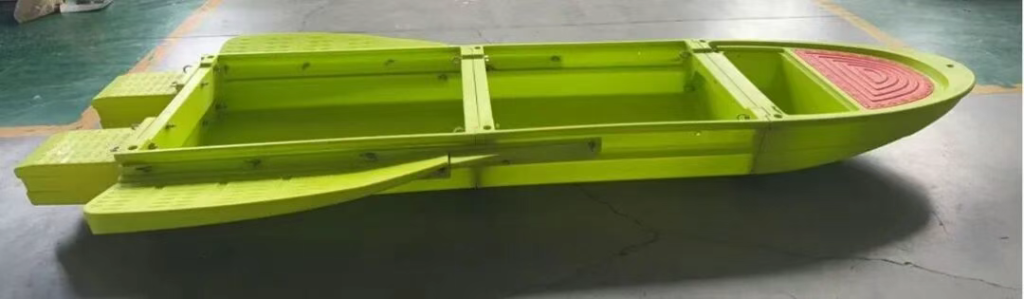 便携式三段式折叠船采用轻质PE 工程塑料,减轻整体重量,便于携带。