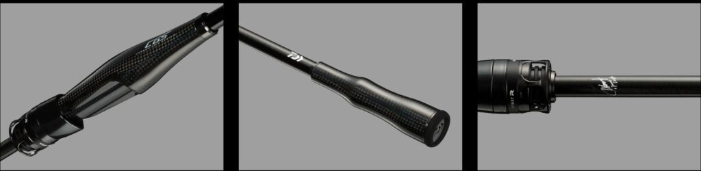 导环方面采用了D厂自家的“AGS”(C 环和 N 环)导环,经过重新评估,对于导环口径进行了优化,其口径更小;并且AGS导环的脚长度进一步缩短,导环脚更加紧凑更贴近竿身,竿身对钓线的信号的感受更直接。