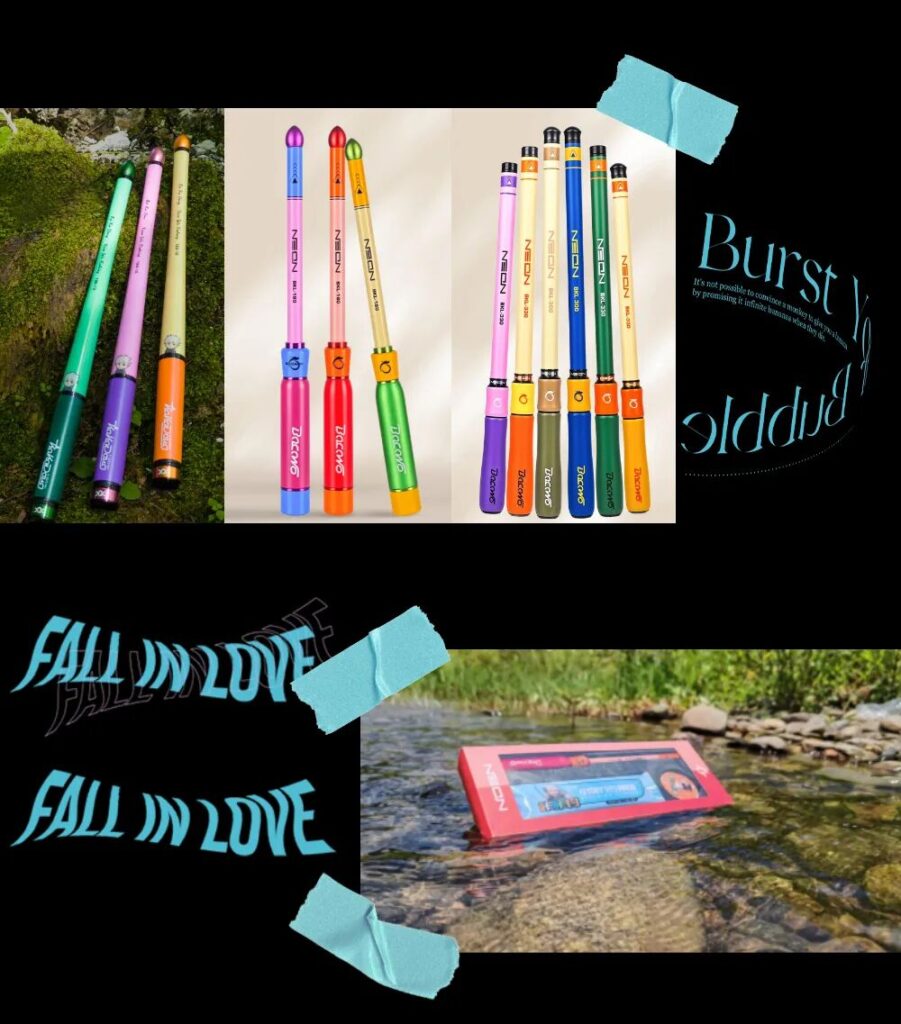 百卡龙创始人宋方毅先生,在2024年早春,乍暖还寒时与朋友露营聚会,那个下午溪流潺潺,风和日丽,朋友们打扮精 致,穿着时尚,天幕帐篷下的欢声笑语间,突然一位女士发出了一个声音“如果此时,能有支漂亮且时尚的鱼竿,让我们钓钓鱼,发个朋友圈,那就更惬意了啊。” 致力于鱼竿生产销售十五年的宋先生,在这次聚会中捕捉到了四个关键词“漂亮” 、 “时尚” 、 “女士” 、 “鱼竿” 。第二天便召集 了公司生产、设计、研发、销售、宣发、企划等一众负责人开会研讨,最终决定,拿出一千万元投入新鱼竿的开发生产当中,百卡龙小物钓由此孕育而生。