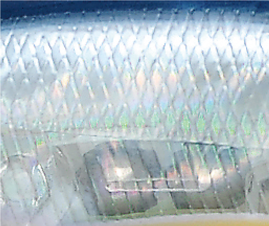 真实再现了饵鱼鳞片中含有的天然鸟嘌呤色素。当光线反射时,它会发出金属光泽,而在光线下它会变成一个透明体(就如名字一样ghost)。和真实的饵鱼非常接近的一种颜色,在任何条件下都能产生现实中存在的颜色。
