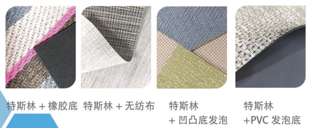户外功能地垫产品采用特斯林与橡胶底、无纺布、四层底发泡或PVC发泡底等复合方式,门幅为110-260厘米,具有抗紫外线、耐海水、防潮减震、环保阻燃、防静电等性能,适用于游艇、邮轮、房车、高档办公场所及商务地毯等用途。