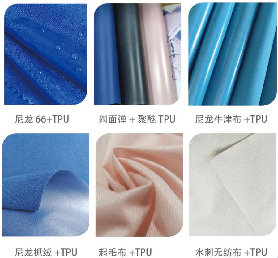 特种高强度面料,如超高分子量聚乙烯与超强TPU复合、导电布与TPU复合等,门幅为100-150厘米,具有高强硬度、抗UV、耐磨损、耐腐蚀、透明度高等特点,适用于水上运动、户外运动、卡扣、拖车、地垫、装饰、航空航天、汽车等领域。