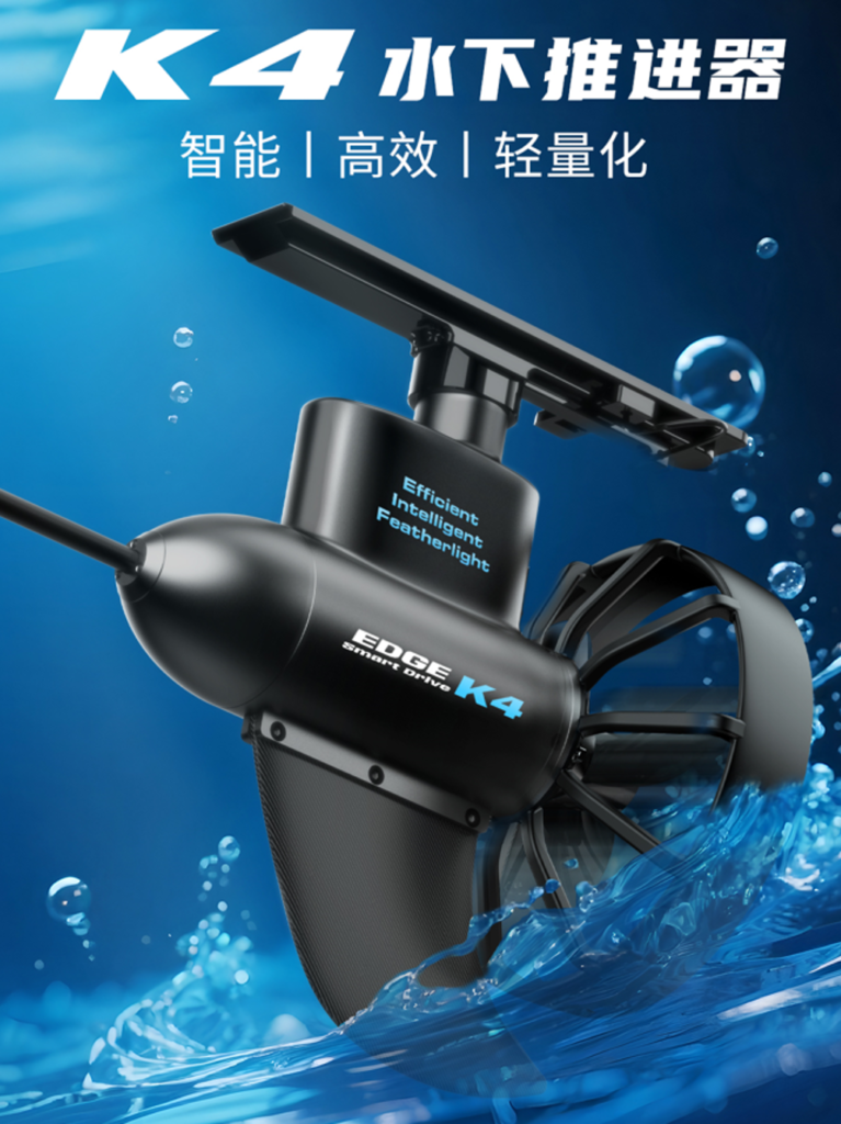 该系列集成推进系统,专为桨板、皮划艇、钓鱼艇等非机动与轻型船只设计。以明星产品K4水下推进器为例,其具备以下核心特点: