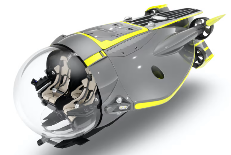 和以前一样,三名乘客仍将通过透明的丙烯酸气泡观看海底世界。它将通过4个15千瓦的推进器,提供总计60千瓦的推力在水中移动,加上后部的水翼,这些将使它进行30度的爬升和潜水。它将能够下潜到300米(984英尺)的最大深度,与一些竞争对手相比,这个深度有点浅。